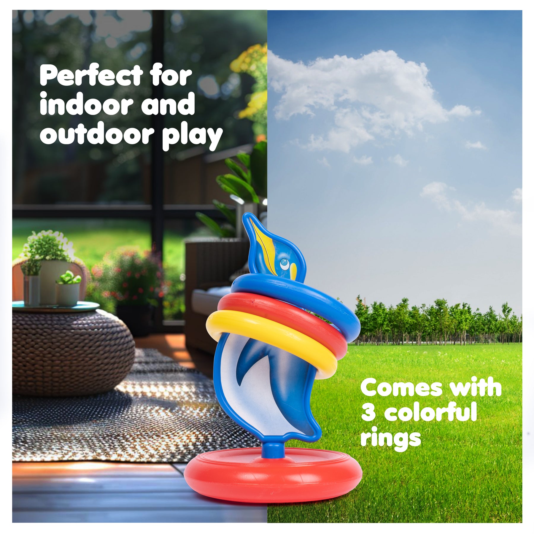 Make early learning fun, active and engaging with the FLYI 3-in-1 Skill Builder Combo, featuring Stacking Cups, Stacking Rings and the Dolphin Ring Toss game. This combo brings together three classic developmental toys that will help toddlers and preschoolers explore colours, sizes, balance, coordination and problem-solving through hands-on play.