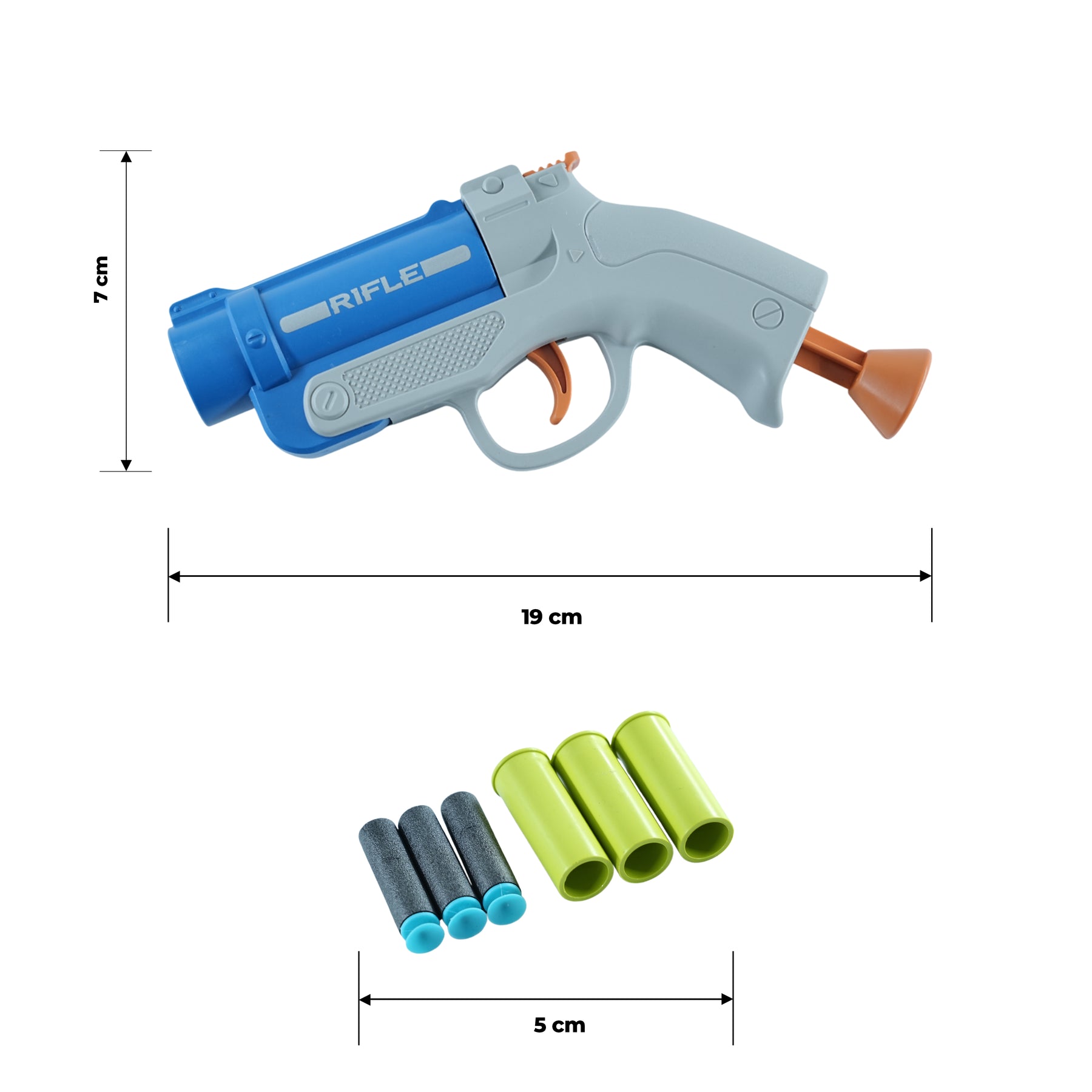It comes with 3 soft foam bullets that are completely safe for indoor and outdoor play. The easy trigger mechanism and compact 19 cm design make it ideal for small hands to operate effortlessly. Whether your child is playing solo, with friends, or outdoors, this Pioneer Rifle Gun enhances imagination, hand-eye coordination, and motor skills.