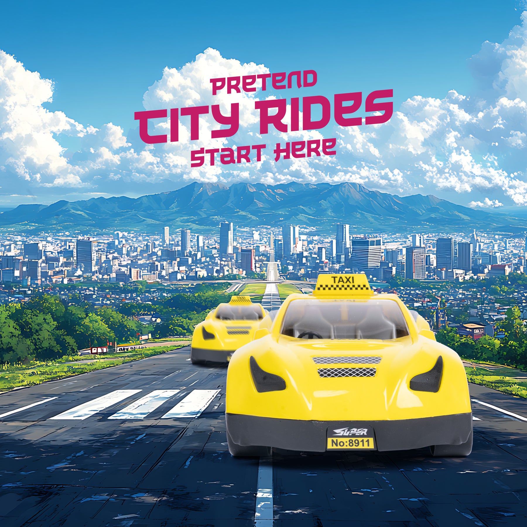 Zoom into action with the Tokyo Taxi – a bold and sporty friction-powered toy car inspired by the fast-moving streets of Tokyo! This vibrant yellow taxi comes with a fun dummy taxi sign and striking graphics that bring a classic city cab to life with a modern twist. Just push and release to watch it speed ahead—no batteries needed!
