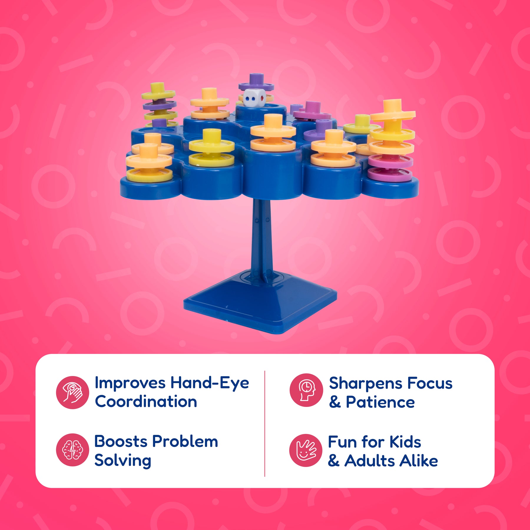 Get ready for endless fun with the Topple Tree Board Game – a multi-play game set that combines excitement and skill-building in one colourful tree! With 5 easy ways to play, this game is perfect for kids and adults alike. This game helps improve hand-eye coordination, focus, patience, and problem-solving skills, all while having a blast. Whether it’s family game night or a friendly challenge, Topple Tree brings everyone together. Suitable for kids and adults. Perfect for parties, playdates, or learning fun at home